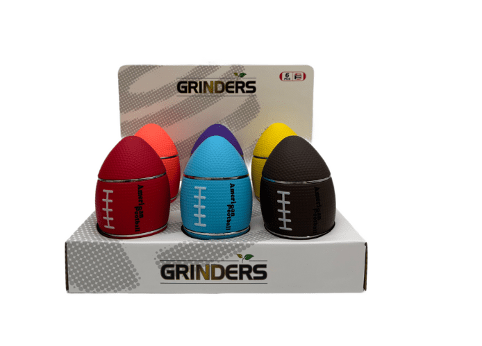 Add sporty style and rugged performance to your grinder lineup with the American Football Shaped Rubber Finished 4-Parts Grinder – 63MM (Display of 6), a durable 4-piece metal grinder built for smooth grinding and strong shelf appeal. Designed in a realistic football shape with a rubberized exterior finish, this grinder offers a comfortable grip, standout novelty value, and reliable daily-use performance—perfect for smoke shops that sell fun, themed accessories.