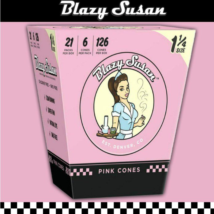 Make rolling easier with Blazy Susan 1 1/4 Pink Cones. These pre-rolled cones are made from natural, slow-burning pink paper, offering a smooth and consistent smoking experience. Perfect for those who prefer convenience without sacrificing quality, these cones are designed to fit 1 1/4 size papers, making them ideal for hand-rolling enthusiasts. With 21 cones per pack, you’ll have plenty to enjoy and share.