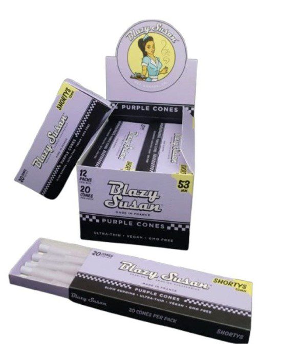 The Blazy Susan Cones 20-Pack Shortys Size is the perfect pre-rolled cone for customers looking for a smaller smoking option. Available in a display of 12 for wholesale purchase, these premium cones are an excellent addition to any smoke shop’s inventory.