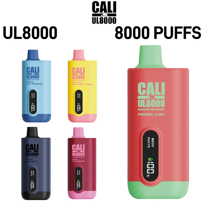 CALI UL8000 is a high-performance, rechargeable disposable vape device designed for extended use and maximum flavor. With 8000 puffs and an 18ml e-liquid capacity, it provides an enjoyable vaping experience that lasts longer and is perfect for users who prefer larger, more consistent sessions.