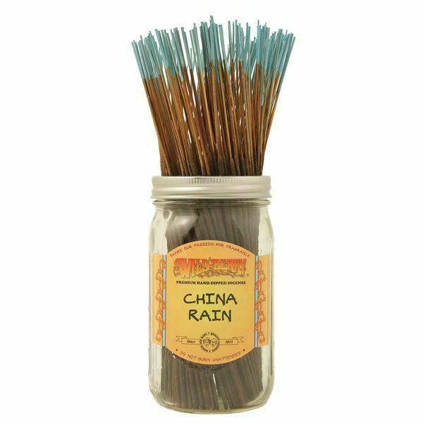 100 hand-dipped China Rain incense sticks. A refreshing herbal citrus scent with notes of bergamot, jasmine, rose, camphor and musk.