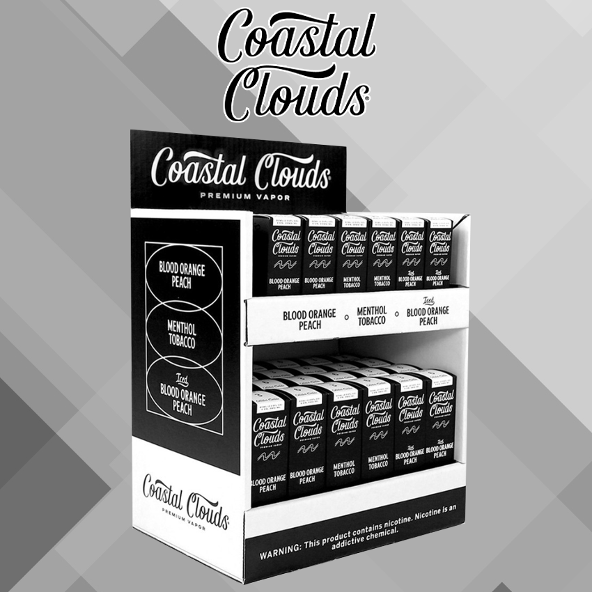 Coastal Clouds Premium E-Liquid Countertop Display – 54CT Display, a must-have for any vape shop or enthusiast looking to offer a premium vaping experience. This display includes a variety of