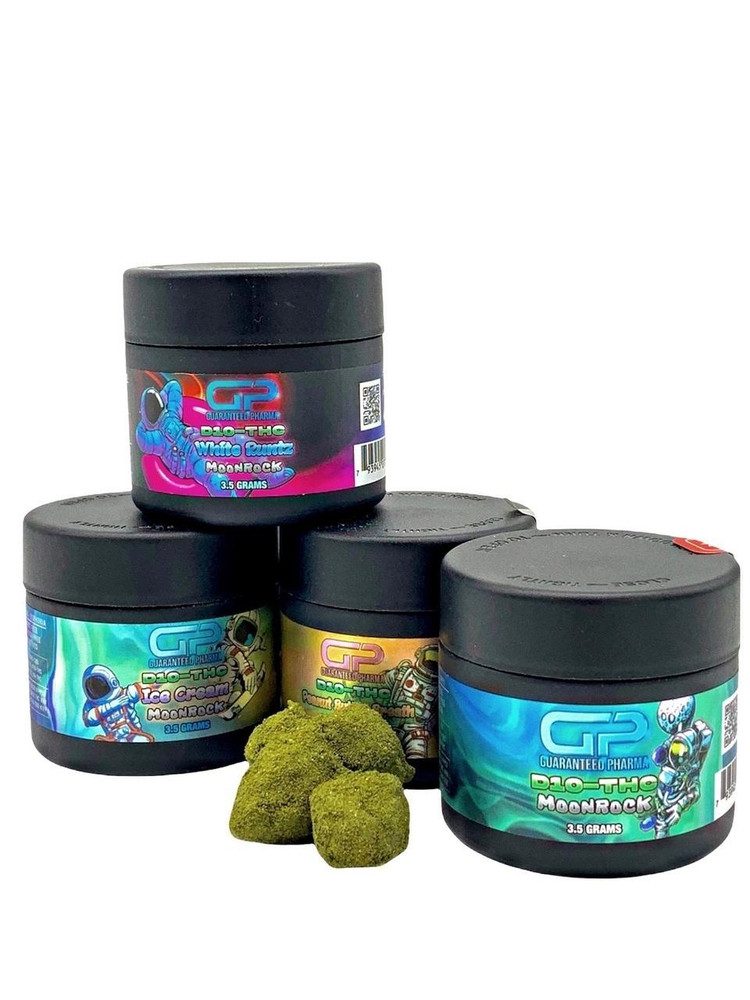 Guaranteed Pharma D10 Moonrock offers a premium Delta-10 THC experience, crafted for users seeking potency, smoothness, and long-lasting effects. This 3.5-gram jar contains high-quality hemp flower, infused with Delta-10 distillate, and coated in rich kief, delivering a slow-burning, powerful, and flavorful session.