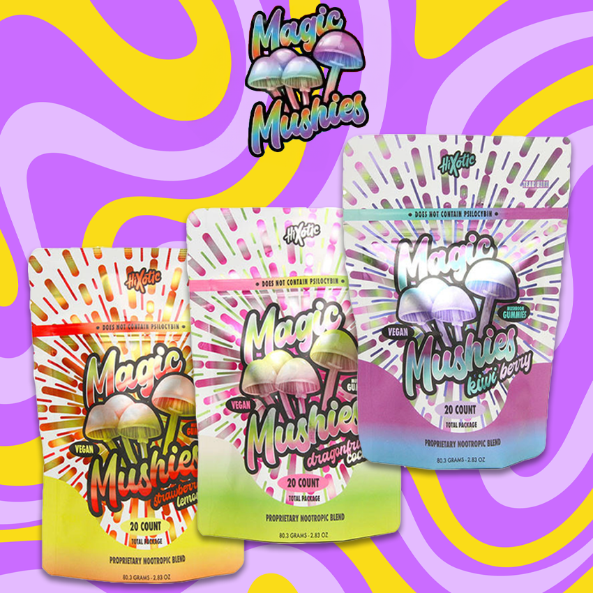 Hixotic is back at it again with their proprietary nanotized nootropic blend of magic mushrooms. This time, this mushroom blend is in gummy format. These magic mushroom gummies come in 20 count gummy packs. Each gummy features 2.5mg of active mushroom blend each. This proprietary blend + Amanita has been said to give users mood enhancement effects, increased energy plus focus, euphoria, and increased creativity. The recommended dosing is as follows; 1-4mg is considered a micro dose, 5-10mg is considered a low dose, and 10-20mg is considered moderate to a high dose. These gummies are currently available in 3 delicious flavors.