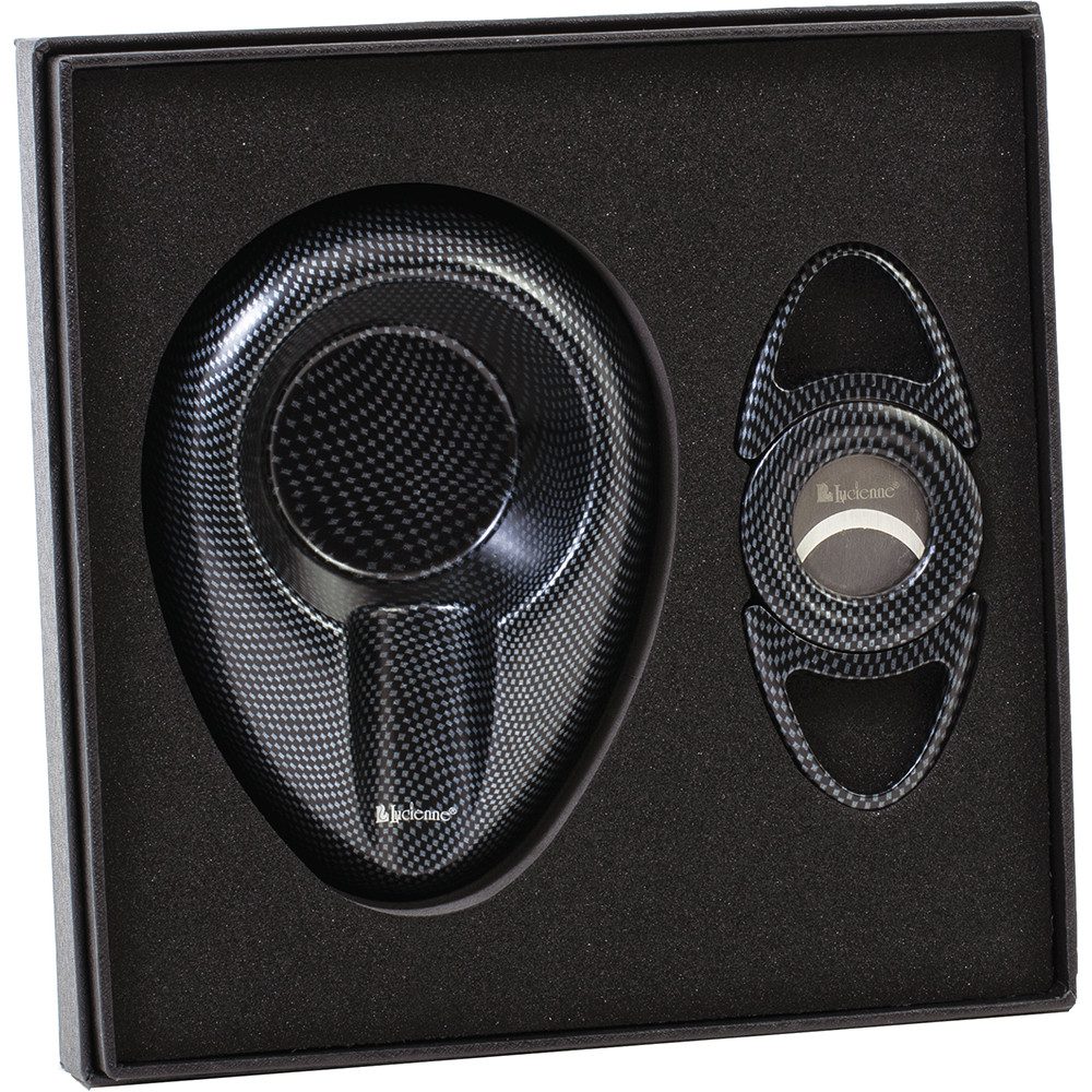 The Lucienne Black Carbon Fiber Design Cigar Cutter & Ashtray Set blends style, functionality, and premium craftsmanship, creating a refined setup that elevates every cigar experience.