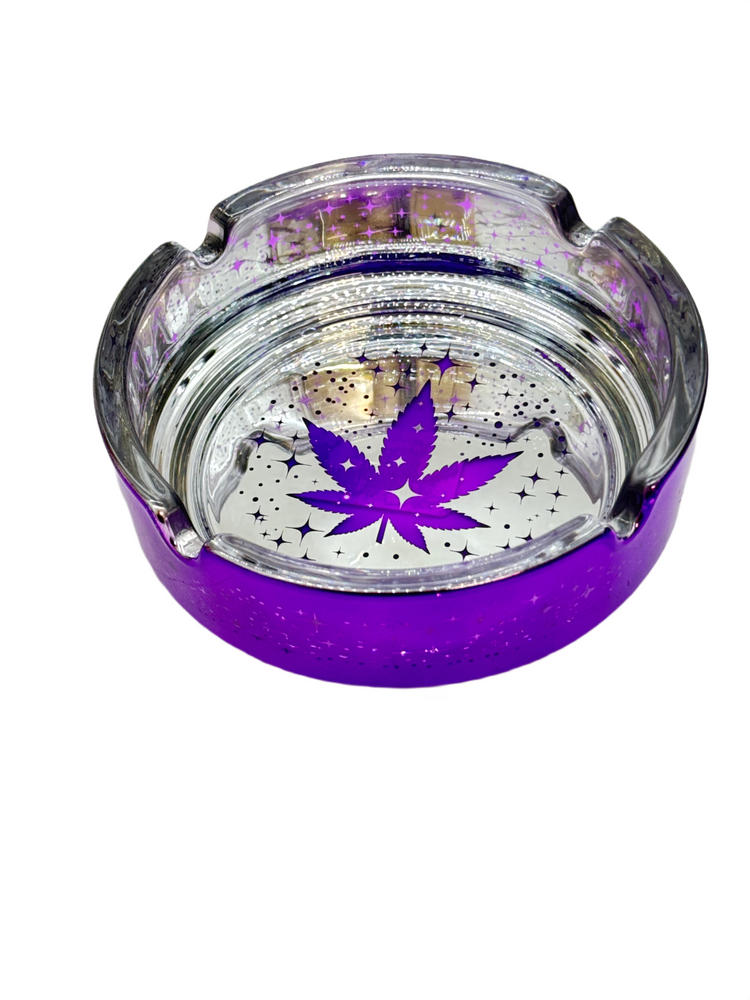 The Metalic Purple Leaf Galaxy Glass Ashtray – Pack of 3 is a visually striking glass accessory designed for smoke shop retailers and licensed resale businesses seeking fast-moving countertop products with bold design appeal and strong shelf presence.