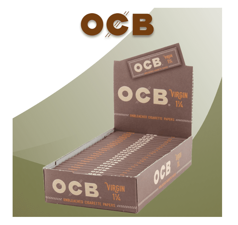 OCB Virgin 1 1/4 Rolling Paper. Order your display of 24 booklets today and elevate your rolling experience with every smoke!