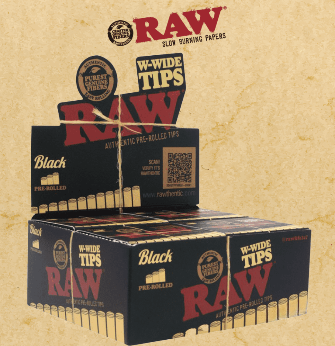 RAW BLACK 18-PK WIDE PREROLLED TIPS – 20CT DISPLAY