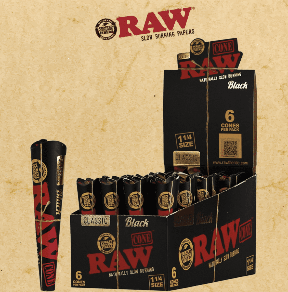 Each pack includes six precision-rolled 1 1/4 size cones with natural gum and RAW’s signature watermark to ensure an even burn. The 32ct countertop display is perfect for smoke shops, dispensaries, and convenience stores looking to offer premium-quality rolling accessories.
