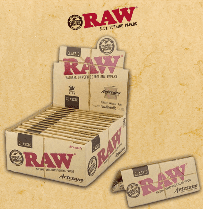 RAW CLASSIC ARTESANO KING SIZE SLIM PAPERS WITH TRAY AND TIPS – 15CT