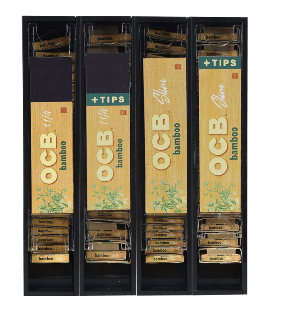 Natural, smooth, and eco-friendly — the OCB Bamboo Modular Display features four of OCB’s most popular bamboo rolling paper options in one elegant setup. Crafted from 100% responsibly harvested bamboo fibers, these papers offer a clean, slow burn and an ultra-smooth rolling experience. This modular display includes both standard papers and papers with tips, giving customers variety, quality, and convenience in a single compact presentation.