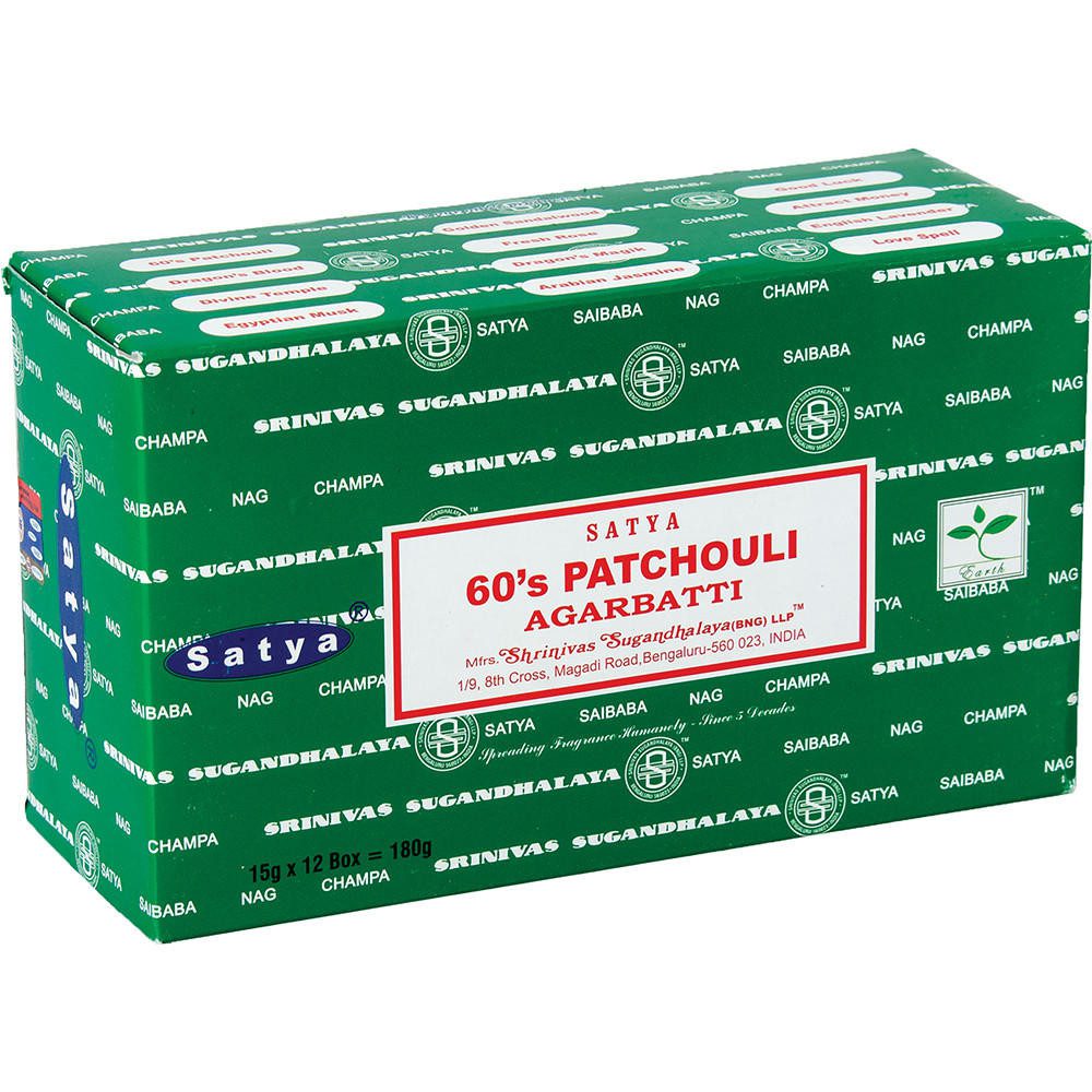 SATYA – 60’s PATCHOULI INCENSE STICKS – 12CT