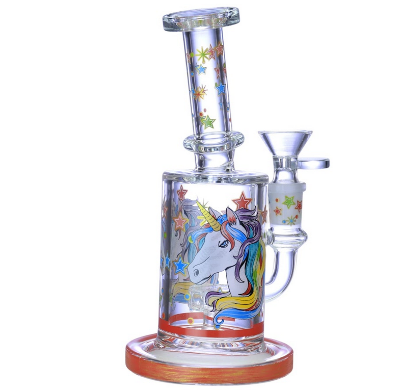 Add playful fantasy flair and compact convenience to your glass selection with a unicorn horn sticker glass waterpipe designed for colorful shelf appeal and everyday usability. Featuring unicorn horn–themed sticker graphics on a 7-inch compact design, this piece blends whimsical visuals with smooth, reliable performance, making it a strong seller for smoke shops seeking fun, novelty glass that attracts impulse buyers.