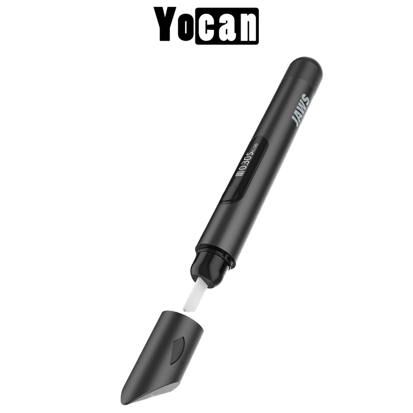 Yocan Black JAWS comes with a ceramic hot knife, a 180mAh battery capacity, an OLED display with infrared thermometry, a safety cut-off, and Type-C charging capabilities.